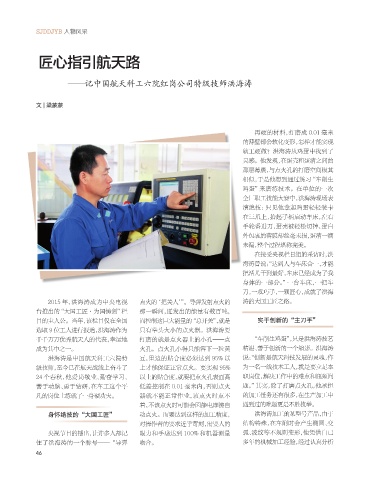 善于动脑、勇于钻研,在车工这个平 低差控制在 0.01 毫米内,否则点火 题。”其实,除了打磨点火孔,他承担