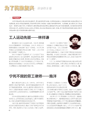 著作。同时,他还深入产业工人居住区,了解工人疾苦, 的优秀党员、劳动者的律师施洋英勇牺牲,时年 34 岁。■