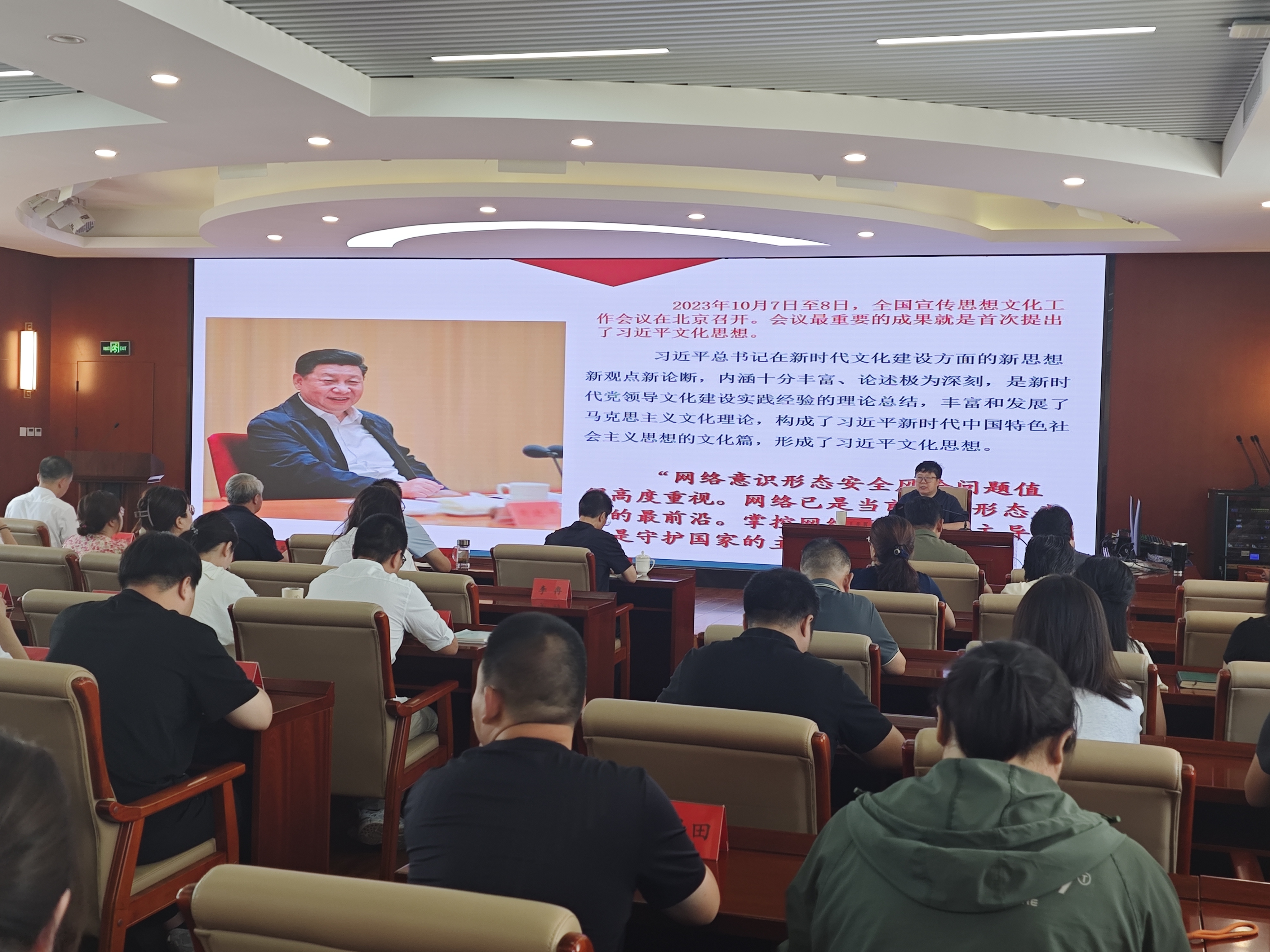 7月22日,实践杂志社召开网络意识形态安全专题培训暨党委理论学习中心组(扩大)学习会,社领导班子及全社干部职工参加培训。