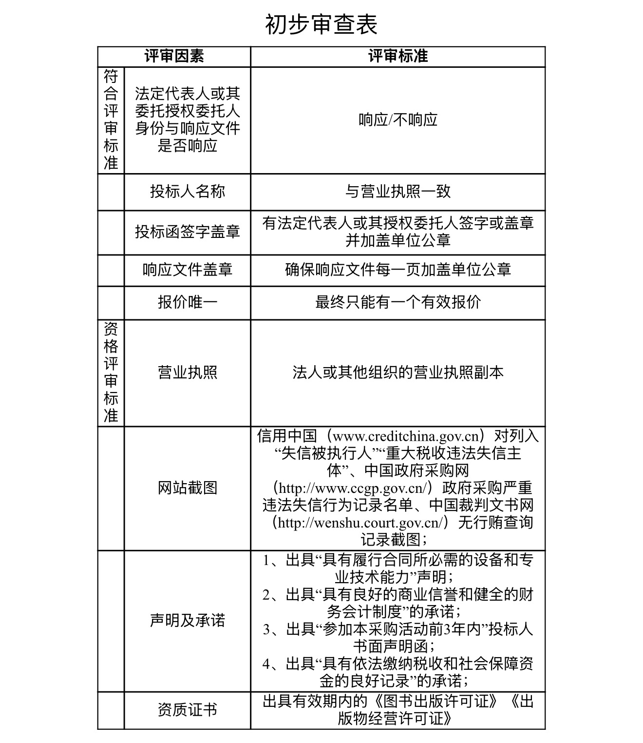 (一)项目小组对所有响应文件进行资格性和符合性审查