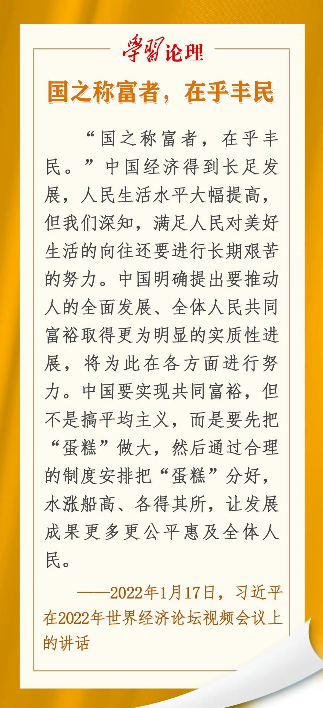 “国之称富者,在乎丰民。”中国实现共同富裕目标,首先要通过全国人民共同奋斗把“蛋糕”做大做好,然后通过合理的制度安排把“蛋糕”切好分好。