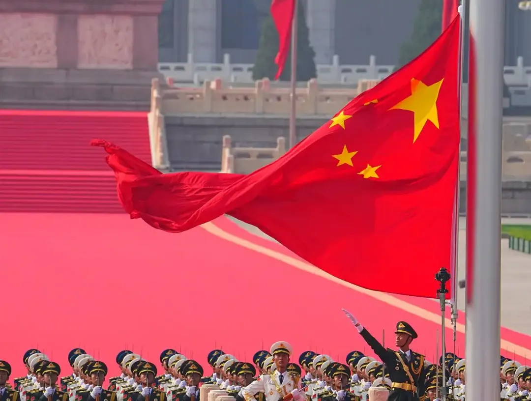 2025年9月3日,纪念中国人民抗日战争暨世界反法西斯战争胜利80周年大会在北京隆重举行,天安门广场举行隆重的升国旗仪式。 图片来源:新华社记者 邢广利 摄