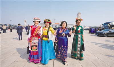 3月8日,女委员们在天安门广场合影留念。当日是“三八”国际劳动妇女节,参加全国两会的女代表、女委员履职尽责、建言献策,尽显新时代巾帼风采。