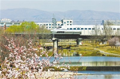 4月2日,和谐号动车组列车行驶在呼和浩特市境内京包客运专线上。清明节假期临近,中国铁路呼和浩特局集团有限公司加大运能供给,加开多趟旅客列车,全力提升客运能力,满足广大旅客清明节假期出行需求。