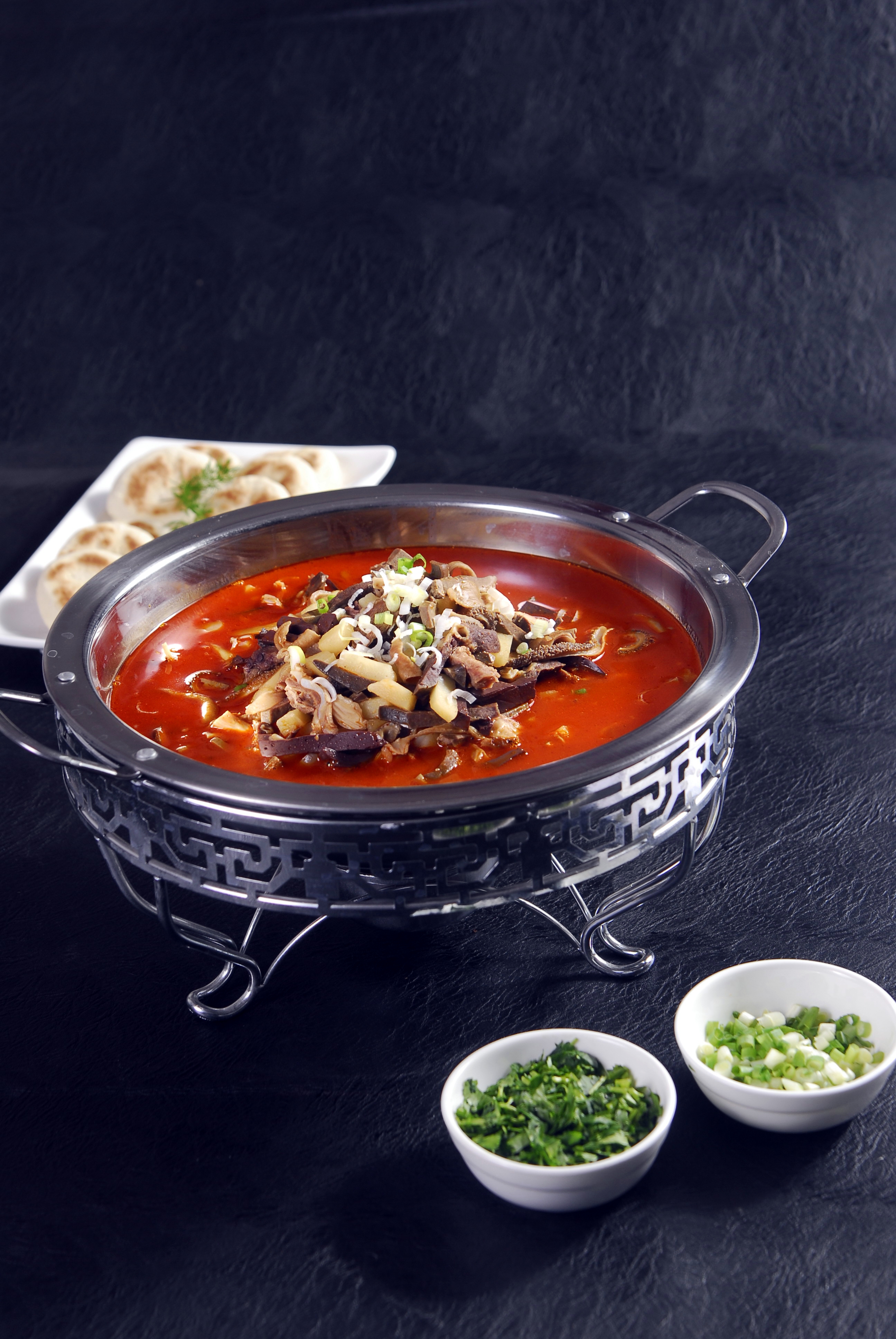 羊杂碎是红食体系中最具市井气息的存在,它将羊的下水(心、肝、肺、肠、肚等)物尽其用,在烟火缭绕中熬出一锅滚烫的生活哲学。羊杂的韧、汤的鲜,寒冬里一碗下肚,从头暖到脚。