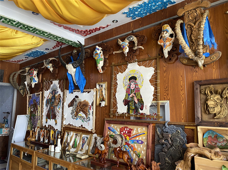 如今,这些非遗技艺正焕发新的活力。新一代非遗匠人在继承传统纹样与技法的基础上,将牛骨雕刻与现代设计结合,开发出更符合当代审美的首饰与文创产品;牛皮画与都市家居风格融合,成为装点现代生活的雅致艺术品。这些创新,让源自草原的古老技艺,进入到现代生活当中,触达了更广阔的人群。