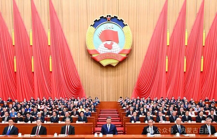 三月的北京,春启华章。人民大会堂大礼堂灯光璀璨,气氛隆重热烈。中国人民政治协商会议会徽悬挂在主席台正中,十面鲜艳的红旗分列两侧。